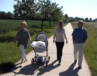 Dieses Mal waren meine Großeltern dabei. Zum Glück haben wir gleich in unserer Nähe so einen schönen Wanderweg, so daß Mama mit mir nicht durch die Straßen laufen muß.