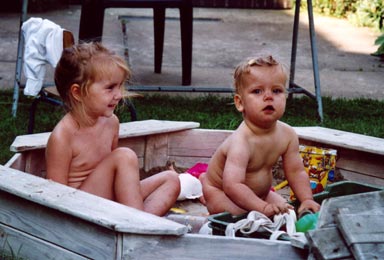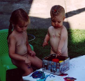 Hinterher waren sogar wir ganz bunt angemalt, daß fand ich toll. Im Sandkasten haben wir fast täglich gespielt.