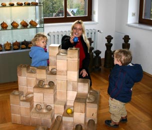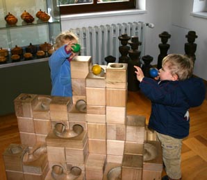 Nachdem uns das mit dem Haus nicht so recht gelingen wollte, gingen wir an die große Kugelbahn und spielten "welche Kugel ist am schnellsten am Ziel". ;-) Als wir das Spielzeugmueum wieder verließen, fuhren wir zusammen in ein tolles Eiskaffee