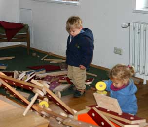 Wir versuchten aus den großen Holzbausteinen ein Haus zu bauen.