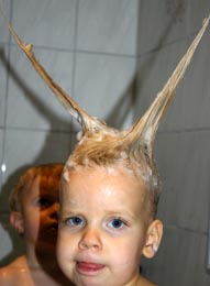 Natürlich kam Riccardo mich auch am darauf folgenden Tag bei Omi und Opi besuchen. Nach dem Spielen und Toben hatten wir ein Bad nötig.