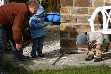 Gemeinsam gingen wir in den Garten und zeigten wie kreativ wir sind. Wir malten Blumen, eine Sonne und natürlich Opi mit dem Drachen ;-)