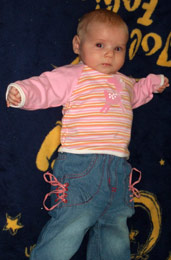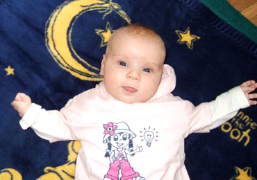 Als wir bei Omi Birgit und Opi Klaus zu Besuch waren, bekam ich von ihnen meine erste Kuscheldecke geschenkt.