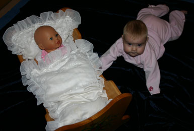 Als ich wieder allein war, vesuchte ich schnell zu meinen Puppen zu krabbeln.